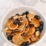Hopped on the trend & made the mini pancake cereal from TikTok! But instead of adding milk, we topped ours with some maple syrup, blueberries, and, of course, our fave Perfect Bar Refrigerated Peanut Butter cups. Even though it took a little while to make, 10 out of 10 would recommend, especially adding the PB cups. They’re so delicious!