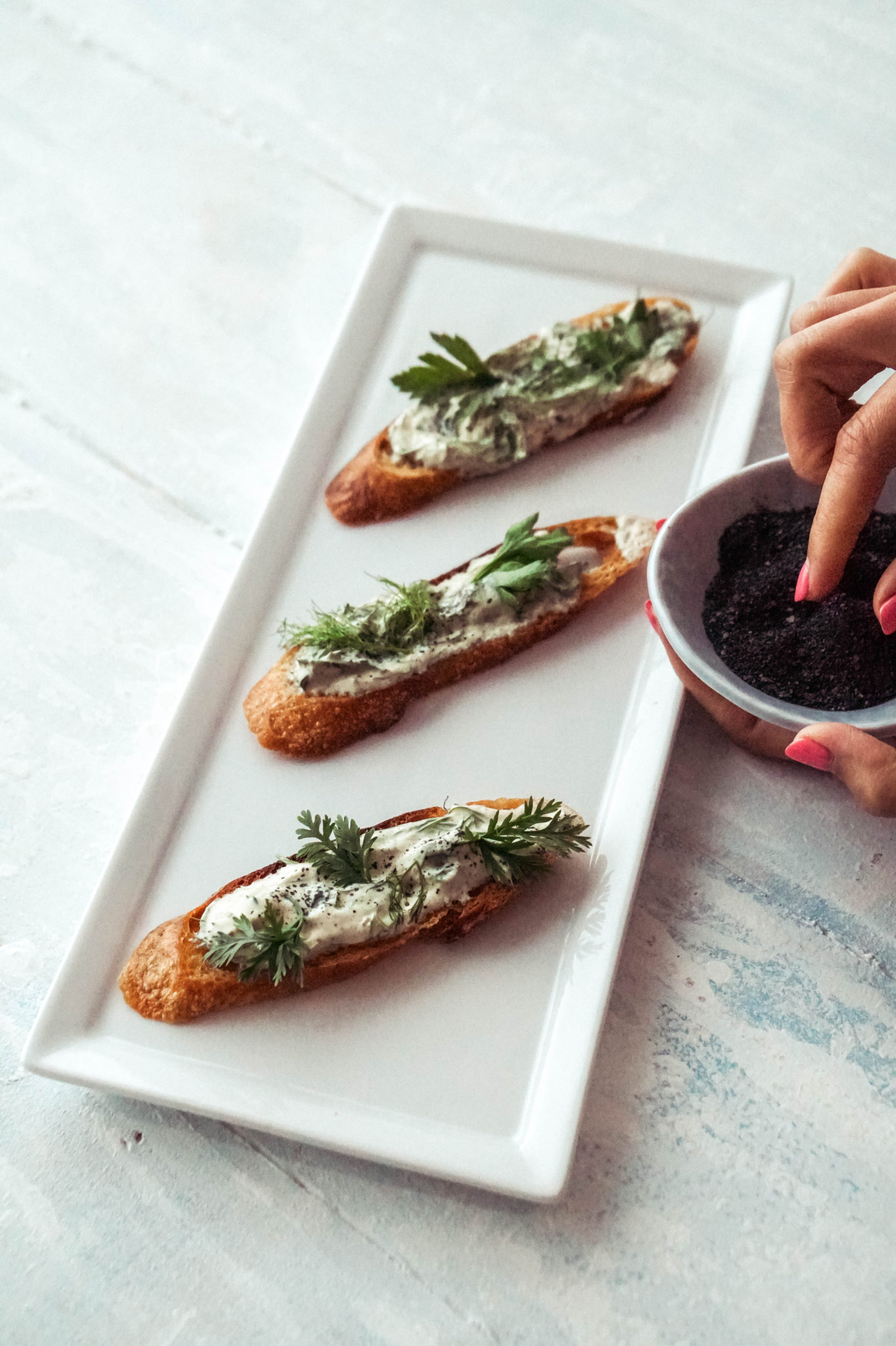 We loved the charcoal salt because it added some color and flavor to our crostini.