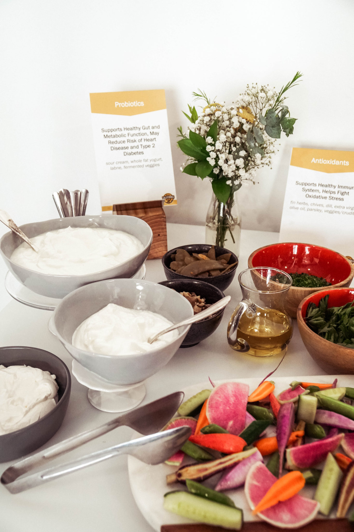 Probiotics support healthy gut and metabolic function and may reduce risk of heart disease and type 2 diabetes. The ingredient options include sour cream, whole fat yogurt, labne, and fermented veggies.